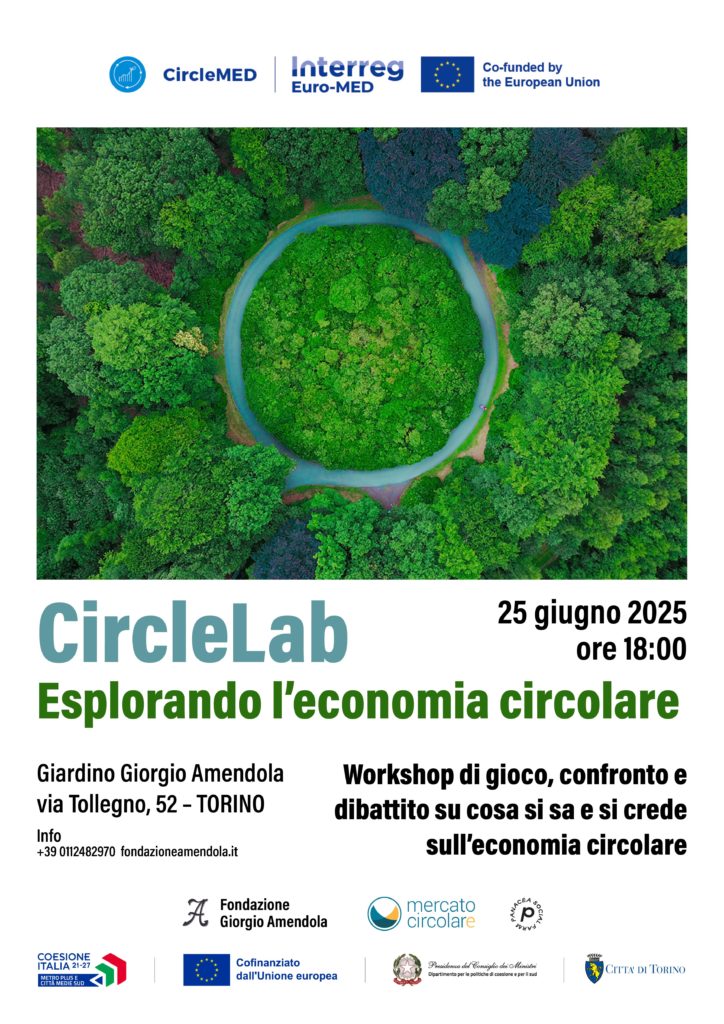 La Fondazione Giorgio Amendola è lieta di ospitare un workshop interattivo dedicato all’economia circolare, nell’ambito del progetto europeo Interreg Euro-MED CircleMED. L’iniziativa si terrà mercoledì 25 giugno dalle ore 18:00, presso il Giardino Giorgio Amendola in Via Tollegno 52, Torino.